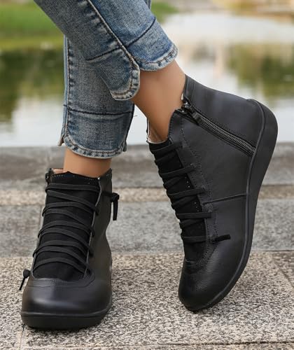 Women's Waterproof Combat Boots Casual Ankle Boots Fashion Round Toe Slip On Elastic Fall Booties Shoes