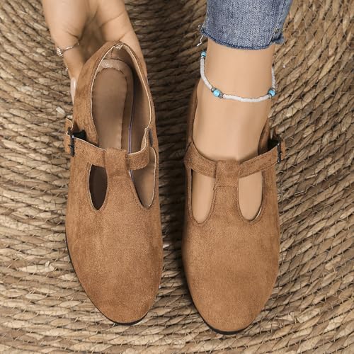 Women's Dress Flats Ballet Low Wedge Round Toe Ankle Strap Comfortable Casual Business Office Work Flats Shoes