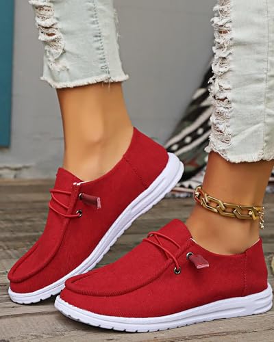 Women's Solid Color Canvas Shoes, Casual Lace Up Flat Loafers, Comfortable & Light-Weight Women's Daily Travel Shoes
