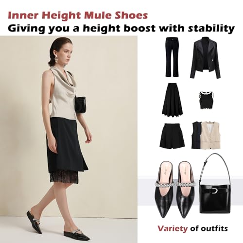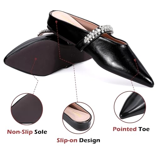 Women's Rhinestone Pointed Toe Mule Flats – 2cm Inner Height Increase, Backless Ballet Slippers for Work, Parties & Shopping