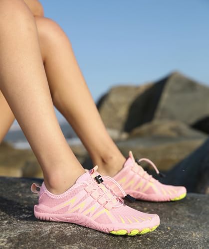 Generic Barefoot Shoes for Women & Men, Wide Toe Box, Breathable, Quick-Dry, Aqua Sports, Beach, River, Athletic, Swim, Surf, Pool, Diving, Hiking, Walking, Pink, US Women's Sizes