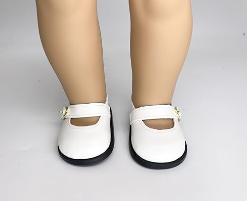 18" American Doll Shoes- Mary Jane Matte Black, Red, White, Pink, Shiny Black Shoe (18" Doll, White)