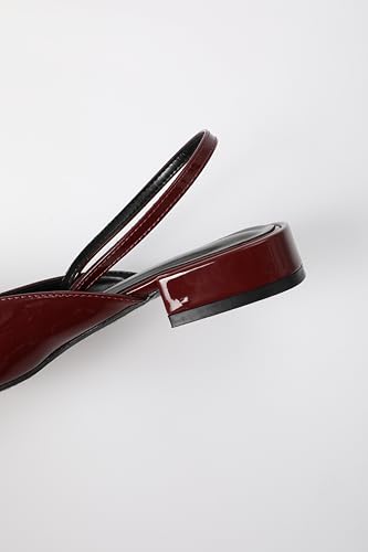 Women's Patent Leather Pointed Toe Slingback Flats with Bow, Burgundy