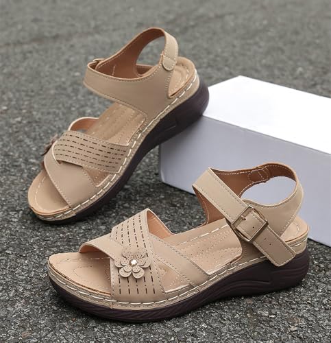 Women's Low Wedge Heels Summer Comfortable Dressy Platform Sandals Buckle Ankle Strap Open Toe Flower Wedge Sandals